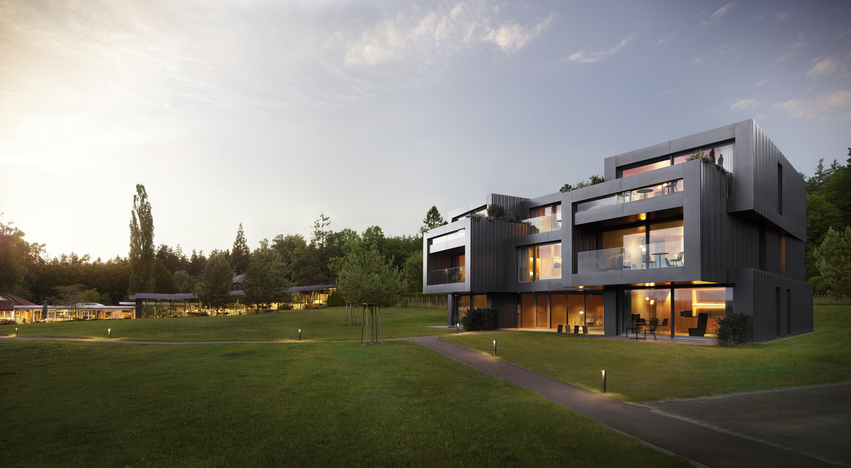 Es entstand die Idee, ein Apartmenthaus in Hallwangen direkt neben dem Open-Space-Office zu errichten. Ein Ort, in Baden-Württemberg, an dem Lernen, Arbeiten und das persönliche Leben in Balance stehen. Ein Ort für Studierende, AiPs, junge Mitarbeitende und Gäste. Ein Campus, der Wissen, Gemeinschaft und Kreativität vereint. Mit Blick auf den Schwarzwald und gelebter Architektur.