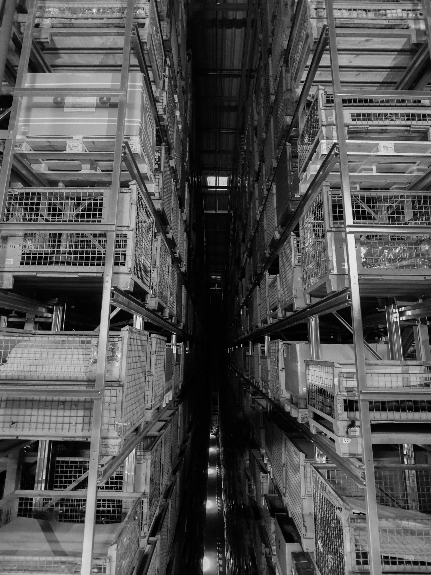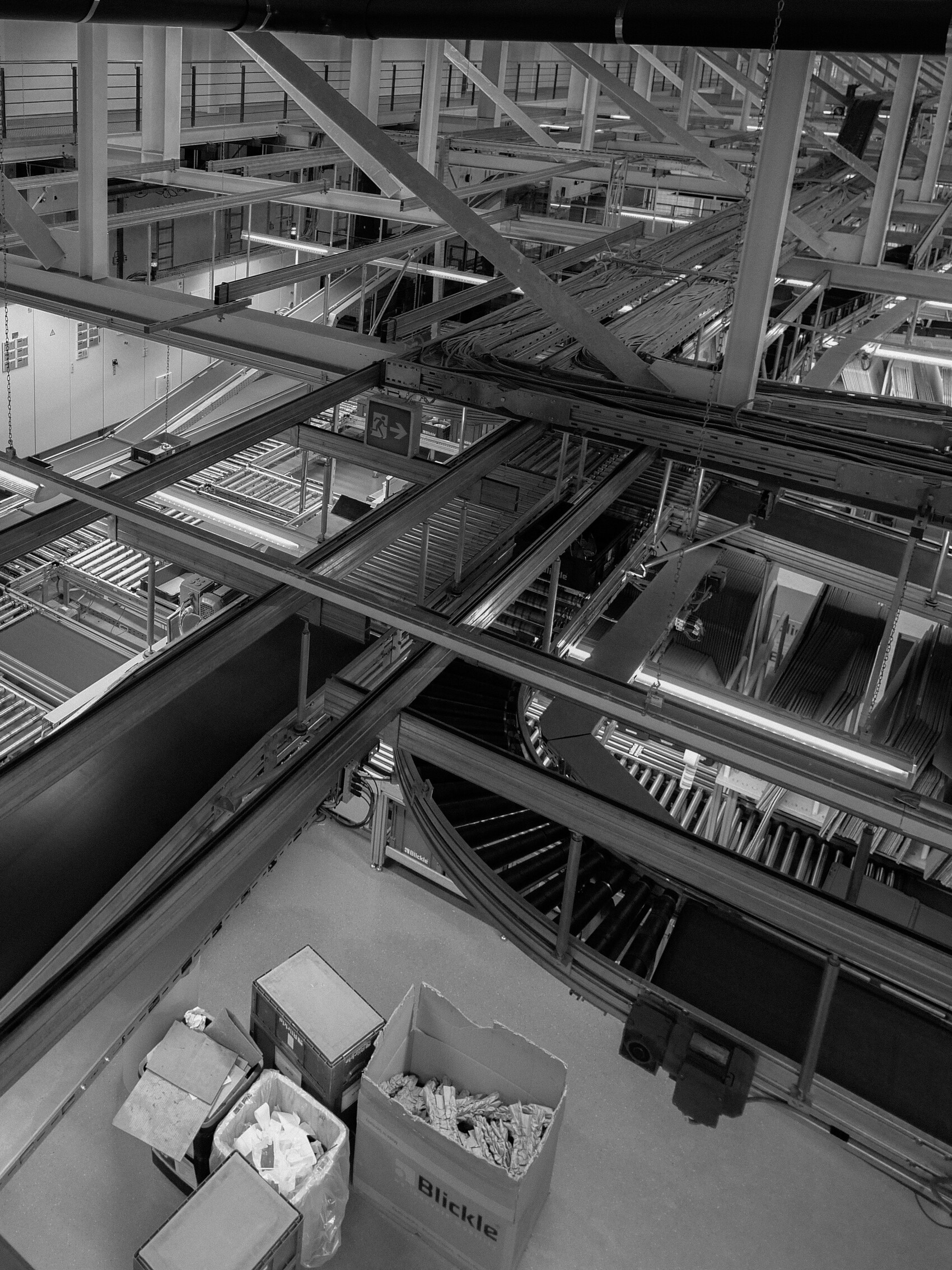 Die Architektur folgt konsequent den logistischen Abläufen. Hoch automatisierte Lagertechnik, kurze Wege und klar organisierte Versandbereiche ermöglichen effiziente Prozesse und hohe Umschlagleistungen. Die transparente Gestaltung der Versandflächen macht Logistik sichtbar und verleiht dem Industriebau eine unerwartete Offenheit.