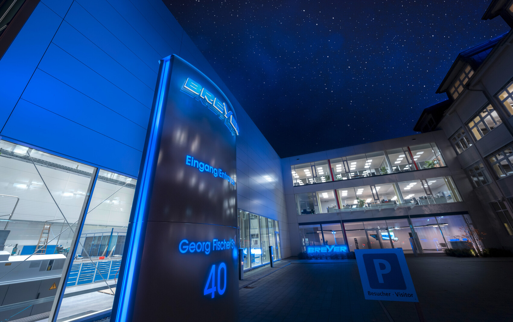 Für eines der weltweit führenden Unternehmen im Bereich hoch entwickelter Extrusionsanlagen wurde die Produktion und Verwaltung gezielt erweitert. Im neuen Produktionsbereich entstanden Flächen für ein modernes Technikum sowie eine Lehrwerkstatt. Die Verwaltung erhielt einen neuen Haupteingang mit Vorplatz und wurde durch einen viergeschossigen Neubau ergänzt, der Open-Space-Büros und Schulungsräume aufnimmt. Der bestehende Verwaltungsbau wurde angebunden und im Zuge des Neubaus umfassend modernisiert.