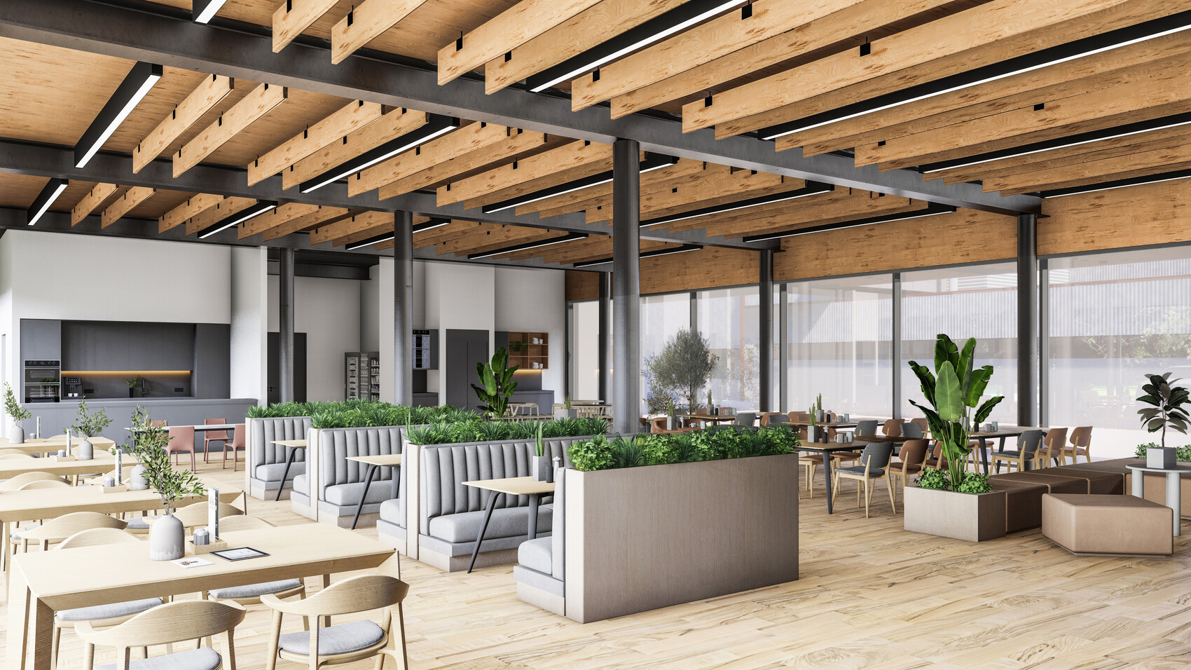Im Erdgeschoss entstehen eine Kantine, Sanitärräume sowie eine Ausstellungsfläche. Das Obergeschoss nimmt Büroräume, Besprechungsräume und weitere Sanitäreinrichtungen auf. Konstruktiv ist der Erweiterungsbau als Hybridbau aus Stahlbau und Brettsperrholz geplant, ergänzt durch einen aussteifenden Treppenhauskern aus Beton.
