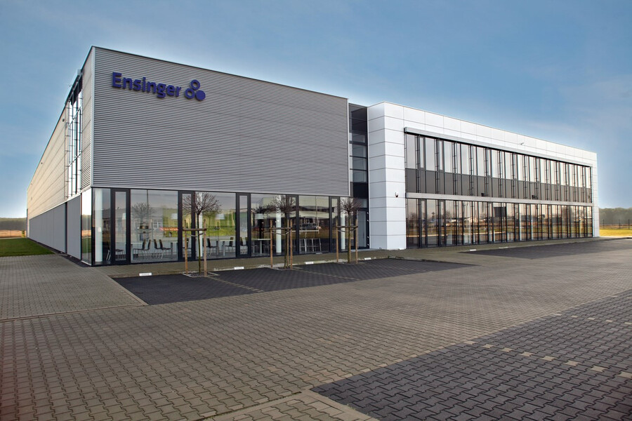 Am Standort Nufringen realisierte Ensinger ein hochmodernes Produktions- und Lagergebäude, das flexibel auf zukünftige Anforderungen reagieren kann. Grundlage war ein Masterplan, der die Entwicklungsmöglichkeiten am Standort aufzeigt und die Fußbodenhöhen von Alt- und Neubau harmonisiert.