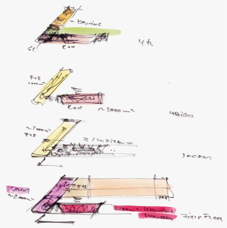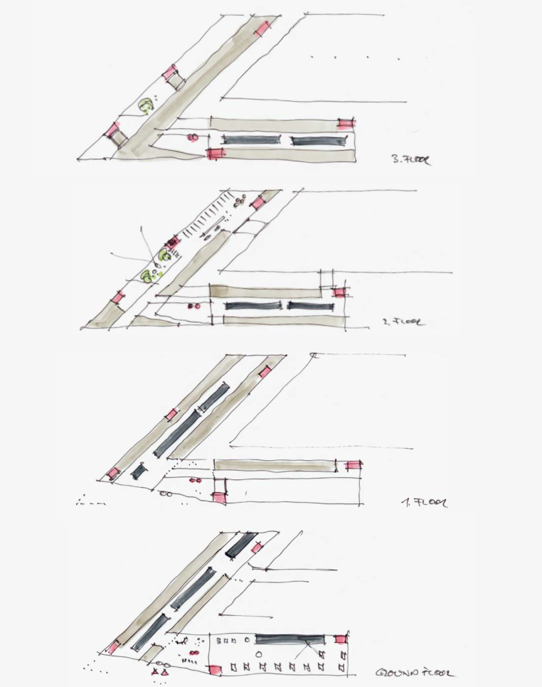 In Rekordzeit wurde gemeinsam mit dem Bauherrn ein Bebauungsplanverfahren angestoßen, und innerhalb von nur sechs Monaten war Baurecht geschaffen – im Vergleich zu den üblichen drei Jahren. Während draußen bereits gebaut wurde, liefen die Ausführungsplanungen für die Innenräume noch, sodass der Bauantrag genehmigt war, bevor die Innenräume endgültig entworfen wurden.