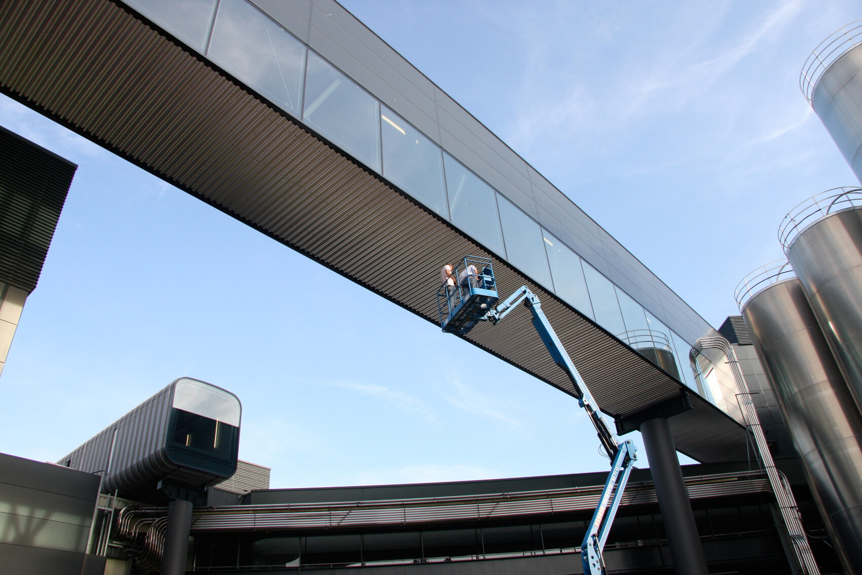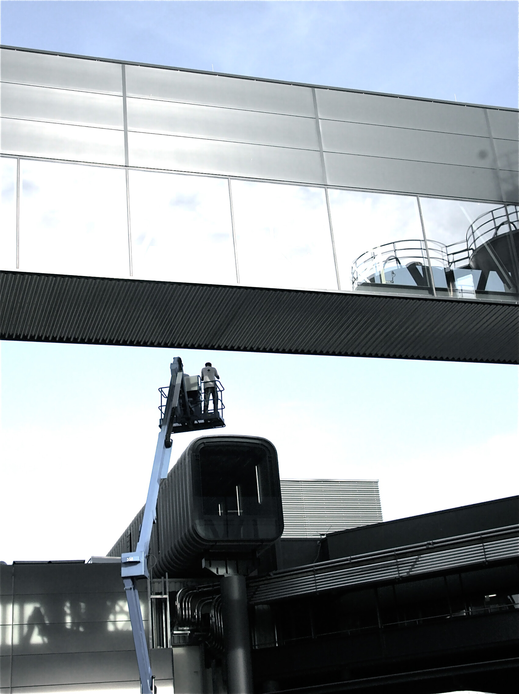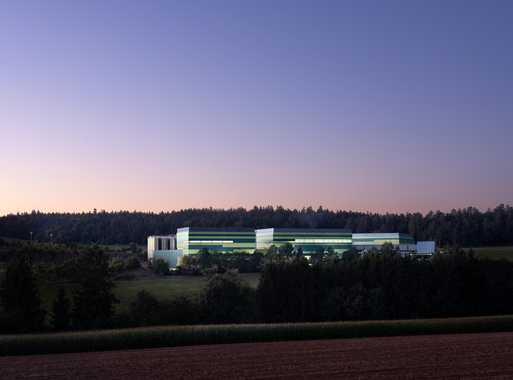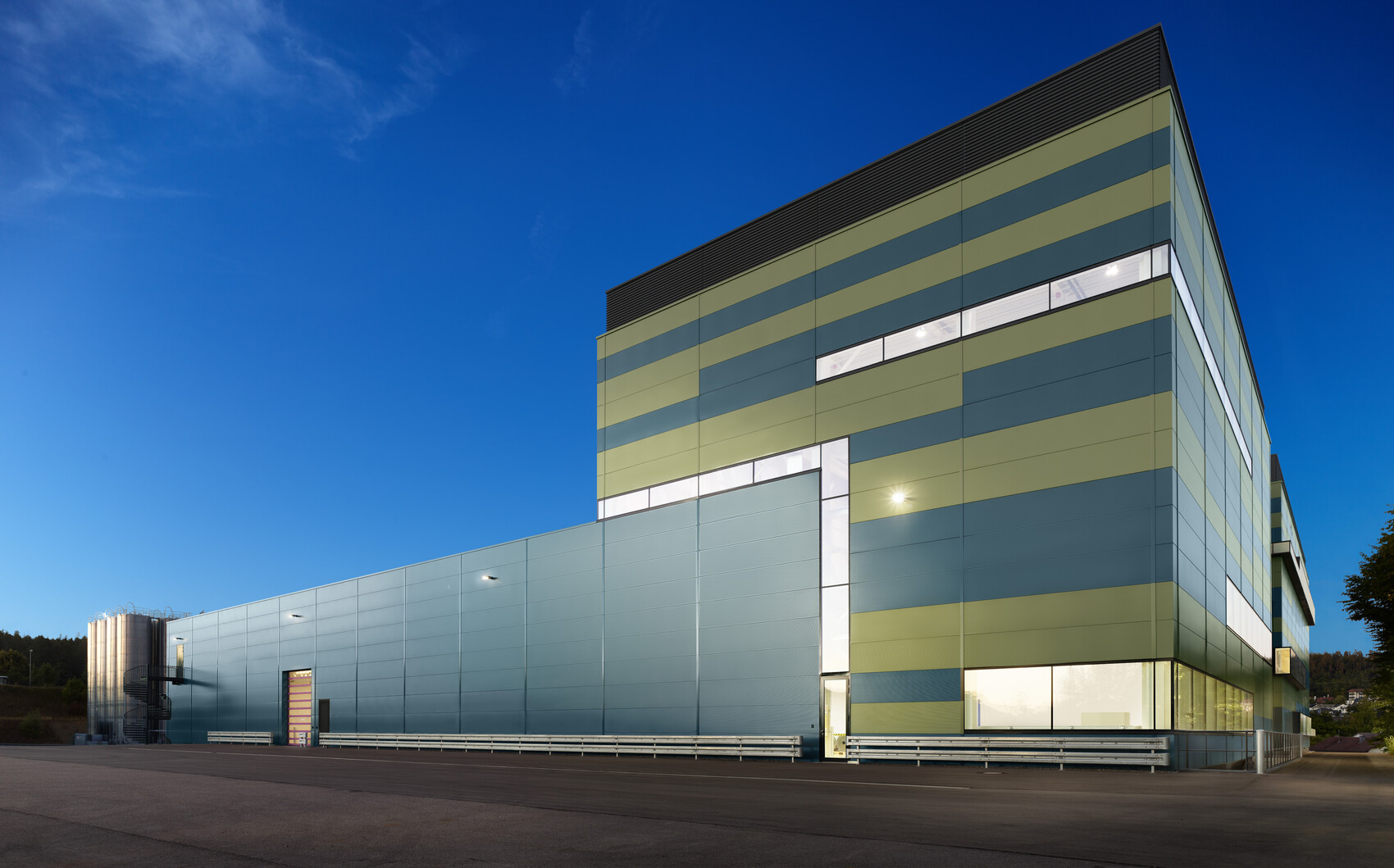Der Produktionsstandort besteht aus insgesamt fünf autonomen Gebäuden. Jedes dieser Gebäude hat eine eigene Versorgung — Strom, Betriebstechnik etc. — sodass sie unabhängig voneinander betrieben werden können.