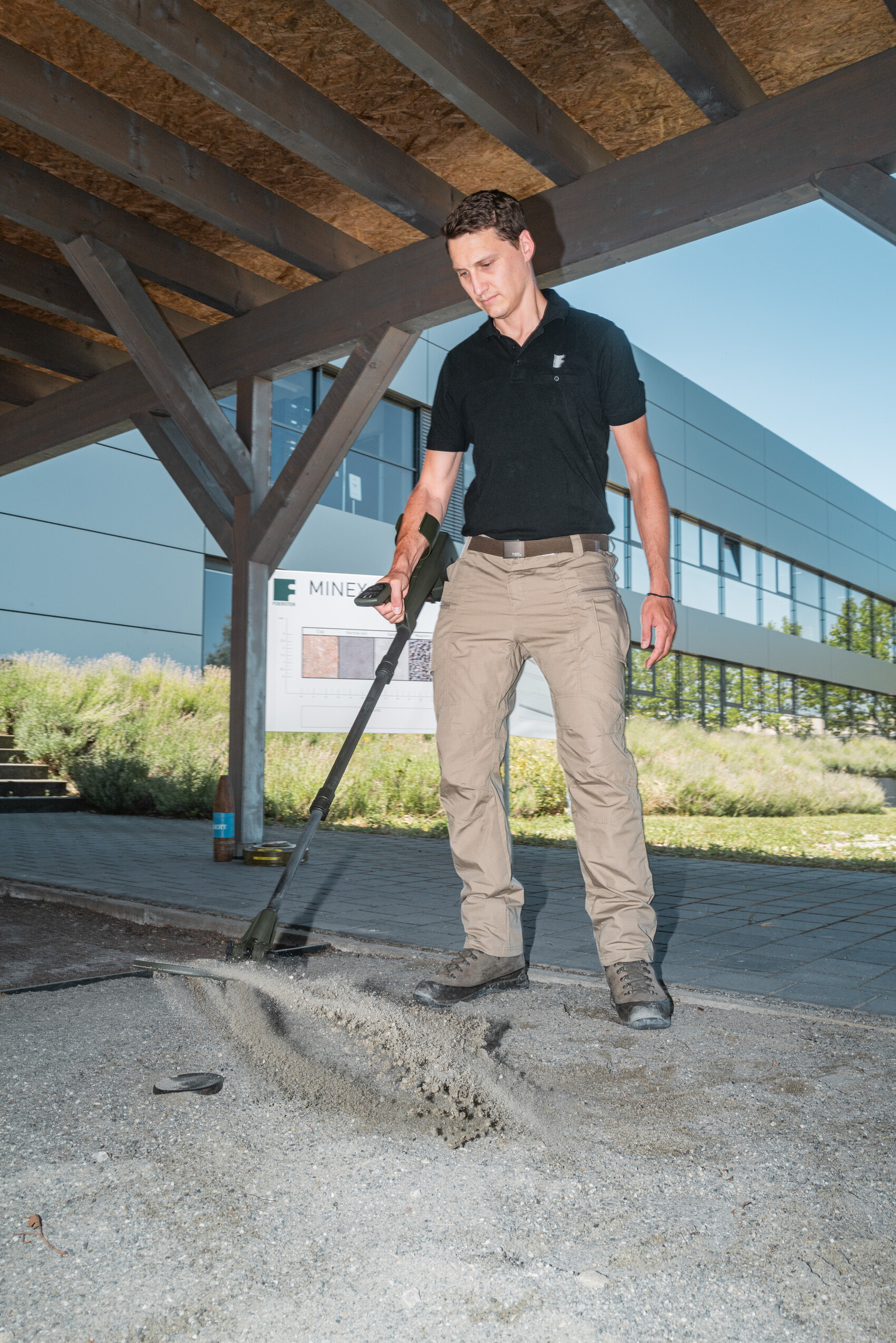Die Aufgabe klang zunächst unkompliziert: eine Überdachung für einen Sandkasten. In der Praxis war das Projekt für die Firma Dr. Foerster jedoch ein wenig komplizierter. Denn in dem Sandkasten werden hochsensible Minensuchgeräte kalibriert. Bei der Konstruktion durfte kein Metall verwendet werden, um elektromagnetische Störungen auszuschließen und die Funktionsfähigkeit der Geräte nicht zu beeinträchtigen.