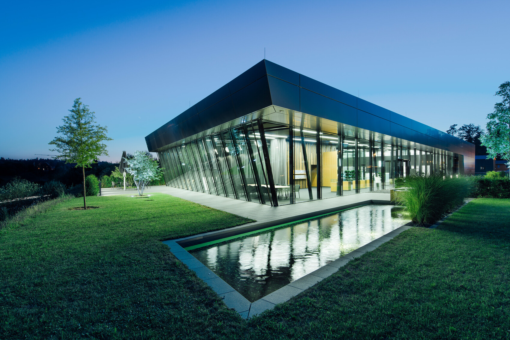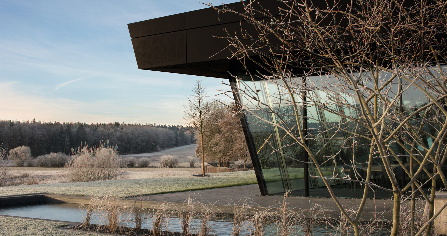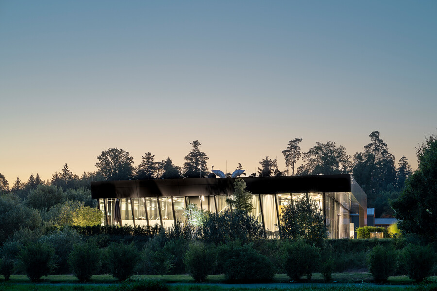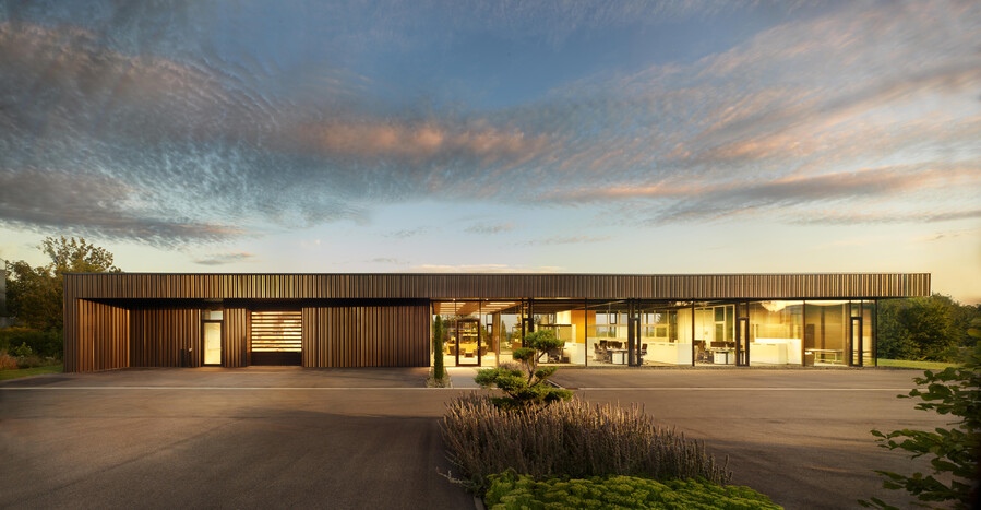 Hochwertige Werkstoffe, handwerkliche Präzision und kompromisslose Qualität – der Anspruch von Lunor an seine Produkte findet im 2016 von SCHMELZLE+PARTNER ARCHITEKTEN realisierten Neubau seine architektonische Entsprechung. Der extravagante Bau übersetzt Markenwerte in Raum, Struktur und Atmosphäre. Die transparente Gesamtstruktur mit großzügigen Verglasungen schafft fließende Übergänge zwischen Innen- und Außenraum und verbindet Arbeitswelt und Umgebung zu einer Einheit.