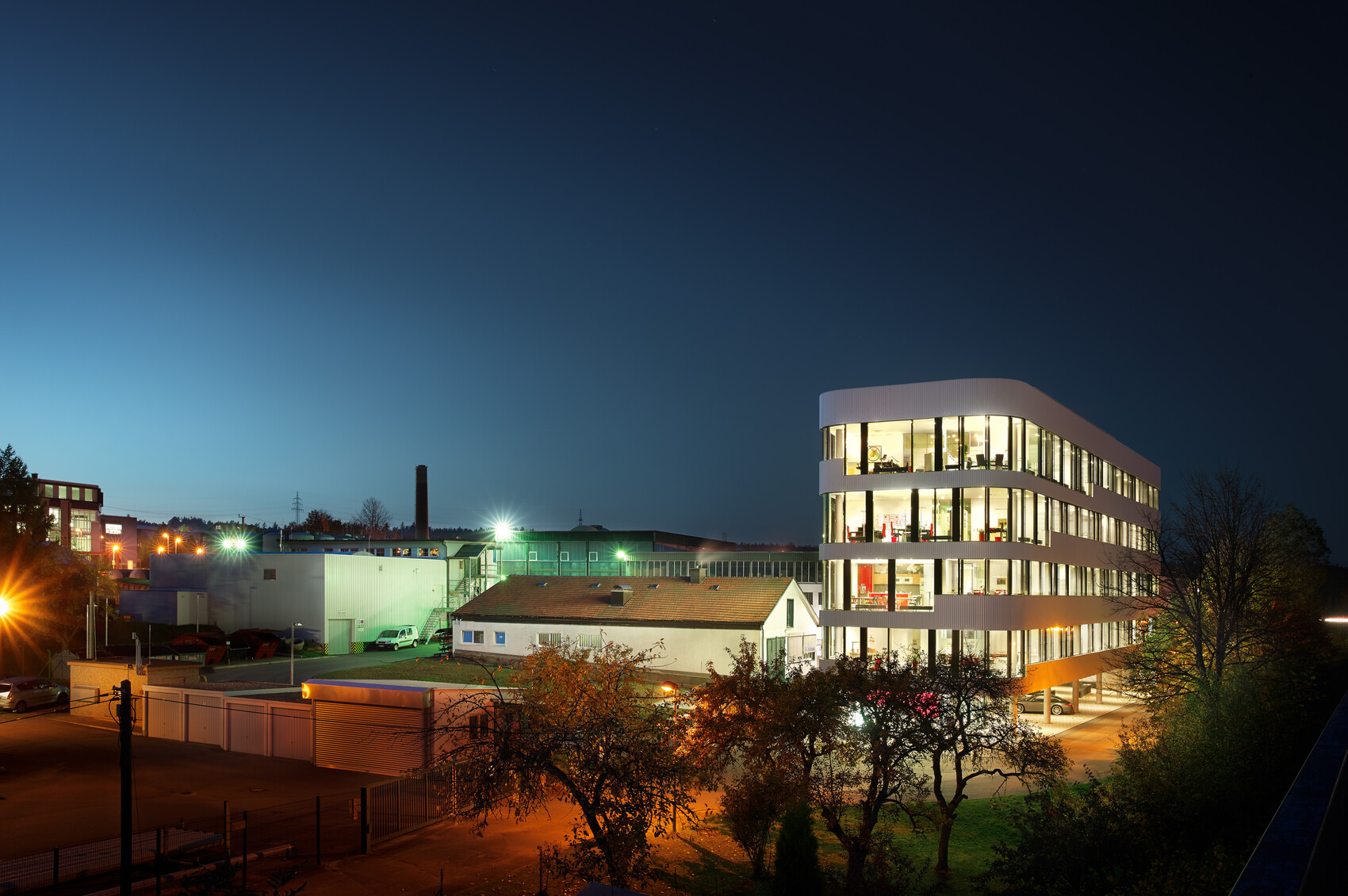 Für die Georg Oest Mineralölwerk GmbH & Co. KG entstand 2010/2011 am Standort Freudenstadt ein Neubau, der Labor, Verwaltung und Logistik unter einem Dach bündelt. Die Architektur übersetzt die Identität des Unternehmens – technisch geprägt, funktional und wirtschaftlich – in eine präzise und eigenständige Gebäudeform.