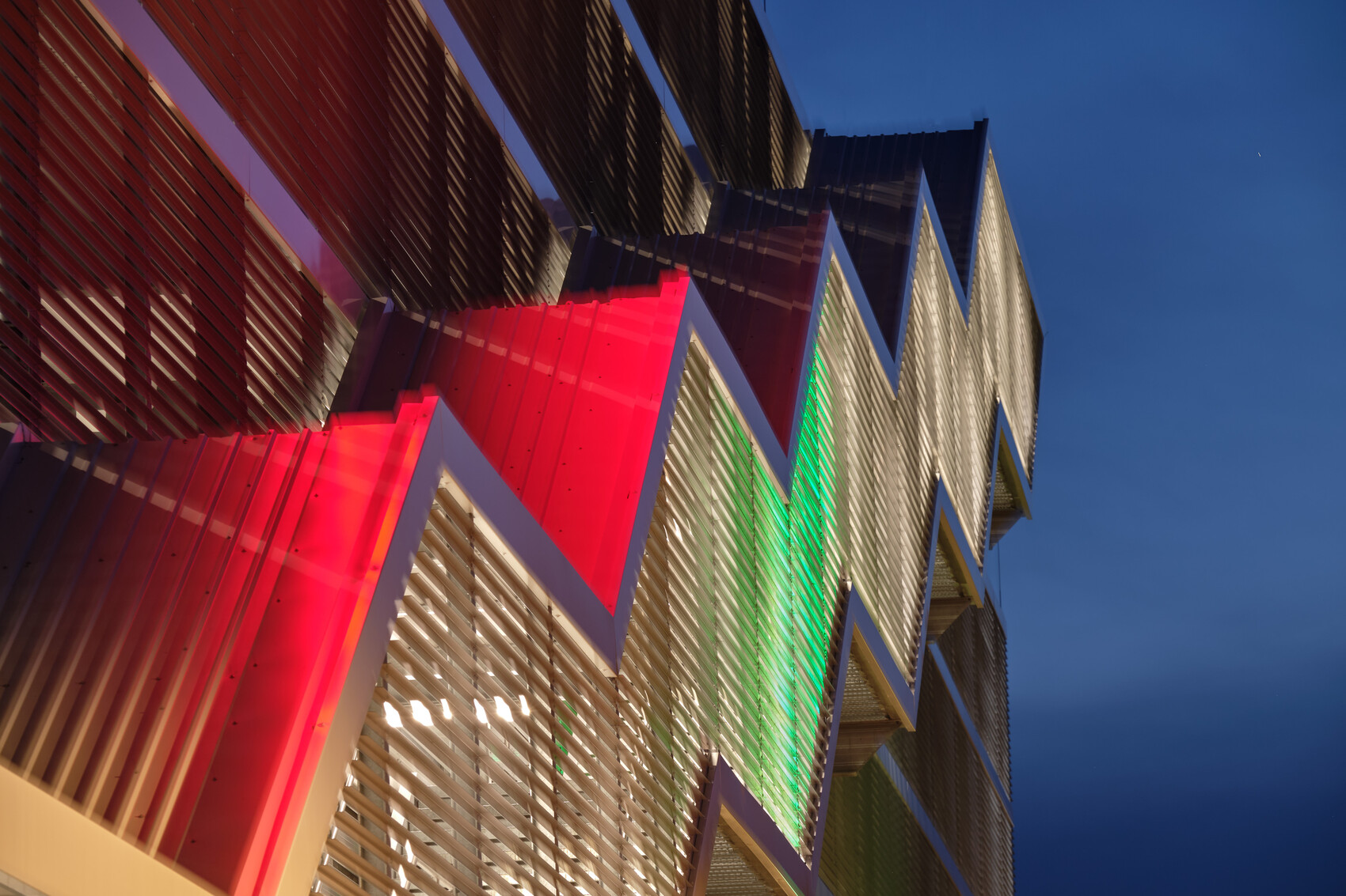Die Photovoltaik-Anlage, die großzügigen Fahrrad- und E-Lade-Infrastrukturen sowie die klare Gliederung der Parkebenen machen das Parkhaus zu einem Vorzeigeprojekt in Sachen Nachhaltigkeit und Mitarbeiterfreundlichkeit.