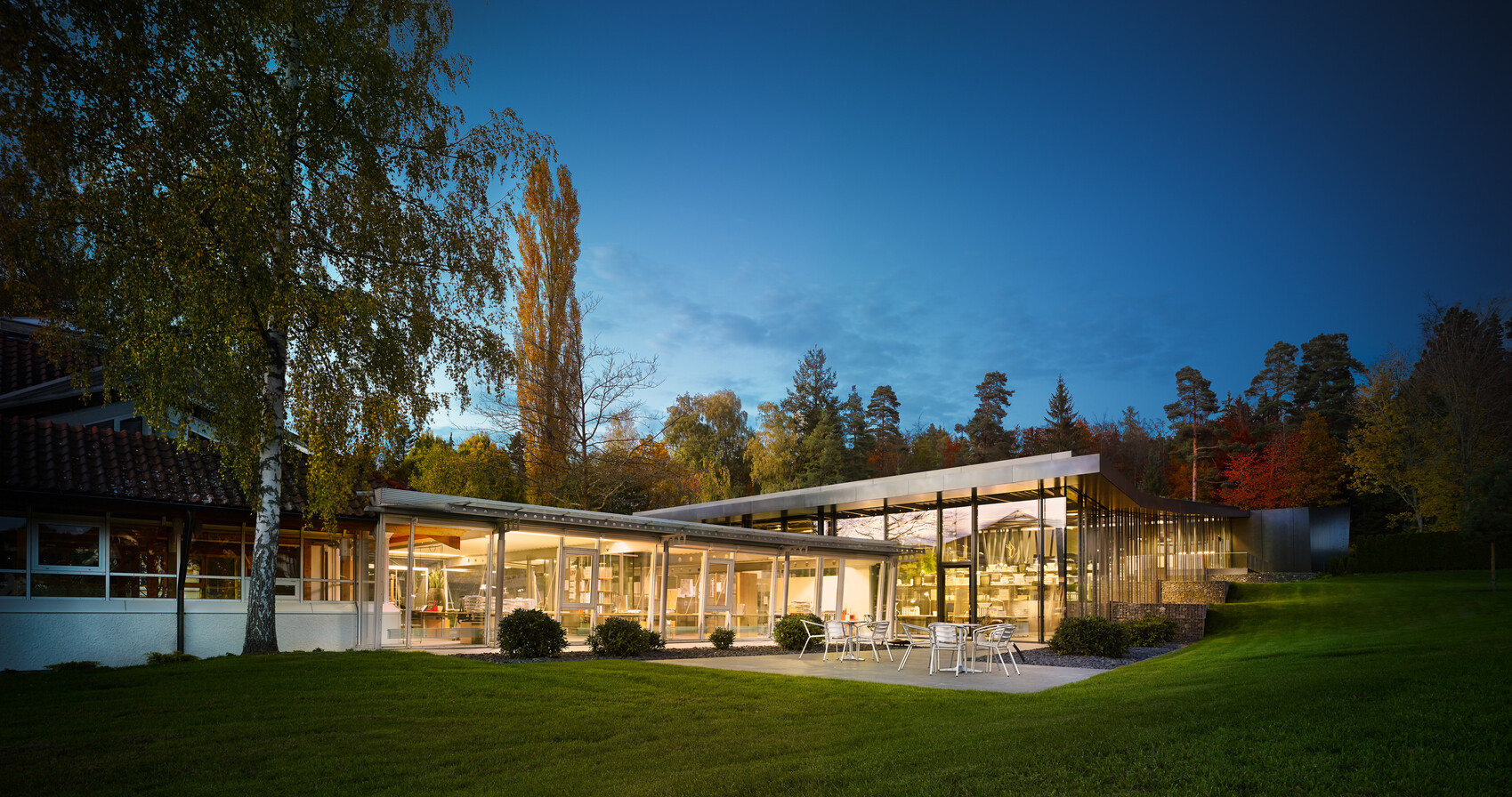 Mit dem Open Space Office aus dem Jahr 2012 schufen wir ein flexibles Zentrum für Zusammenarbeit und Wachstum. Der flache Baukörper bietet heute Platz für über 50 Mitarbeitende und markiert den Beginn einer Campus-Architektur, die sich dynamisch an die Bedürfnisse des Büros anpasst.