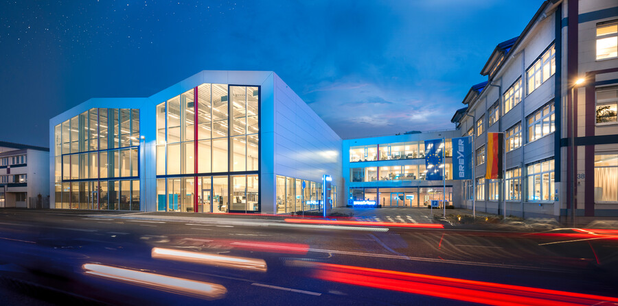 Das Gebäude überzeugt durch eine energetisch optimierte Gebäudehülle und eine intelligente Energieerzeugung. Prozessabwärme und Wärmerückgewinnung reduzieren den Primärenergiebedarf um mehr als 20 %. Regenwasser wird teilweise versickert und in ein natürliches Gewässer eingeleitet, wodurch die öffentliche Kanalisation entlastet wird.